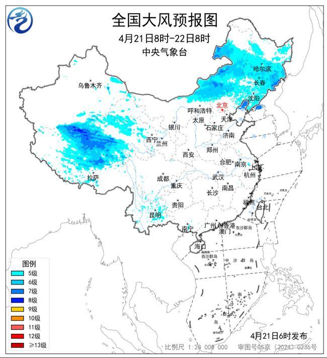 华夏气象网讯 中心气呼呼象台4月21日06时持续颁发年夜风蓝色预警: 估计,4月21日08时至22日08时,内乱受古中东部、乌龙江中北部、凶林、辽宁和新疆北疆盆天、西躲北部、青海西部等天片面区域有5~7级风,阵风8~9级,渤海北部海疆、黄海北部海疆将有7级、阵风8级的风。